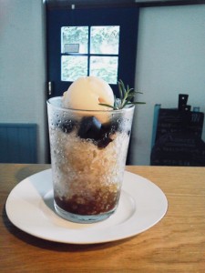 □ 杏ミルクヨーグルト(自家製杏のピュレ、プレーンヨーグルト、練乳、自家製バニラアイスクリーム、氷)