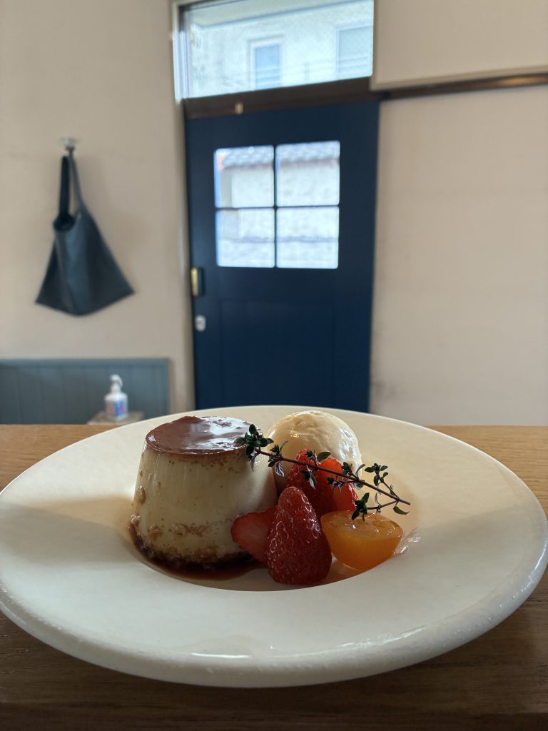 * カスタードプリンと自家製バニラアイスクリーム、フルーツ少々 ・・・ 700円